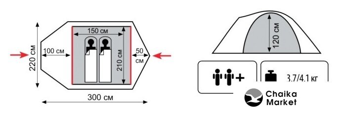 | Водостойкость тента | 8 000 мм вод. ст. |