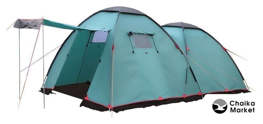 кемпинговая, зима/весна/лето/осень, 4-местная, 2 входа, 2 комнаты, противомоскитная сетка, тамбур, штормовые оттяжки