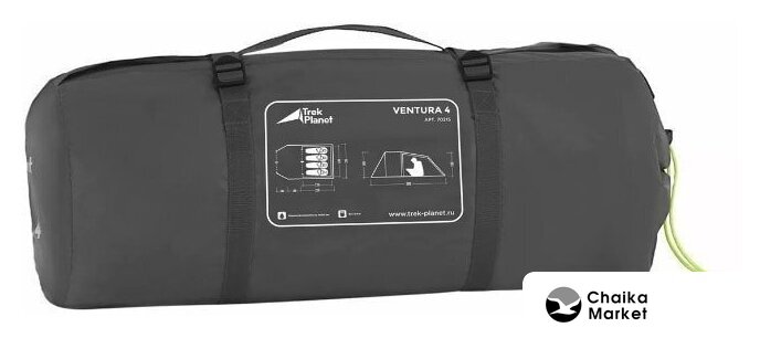 кемпинговая, весна/лето/осень, 4-местная, 2 входа, 1 комната, противомоскитная сетка, тамбур, штормовые оттяжки, ДхШхВ: 360x250x140 см