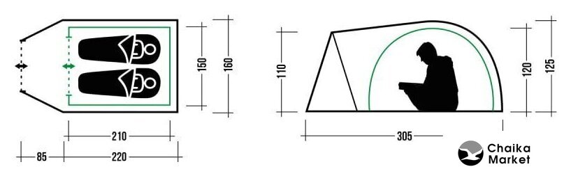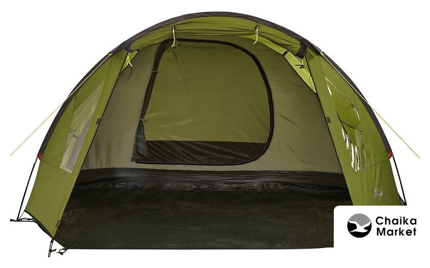 кемпинговая, весна/лето/осень, 4-местная, 2 входа, 1 комната, противомоскитная сетка, тамбур, штормовые оттяжки, ДхШхВ: 440x210x185 см