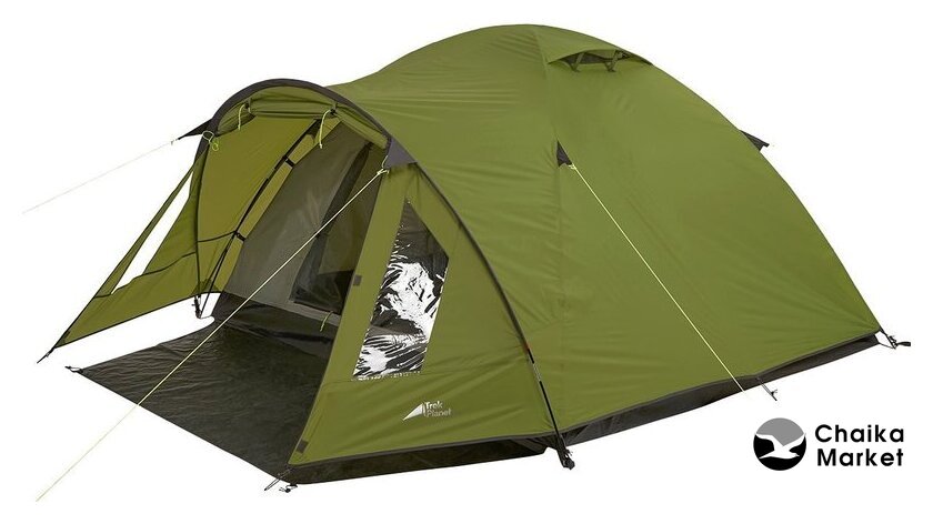 кемпинговая, весна/лето/осень, 3-местная, 1 вход, 1 комната, противомоскитная сетка, тамбур, штормовые оттяжки, ДхШхВ: 310x200x135 см