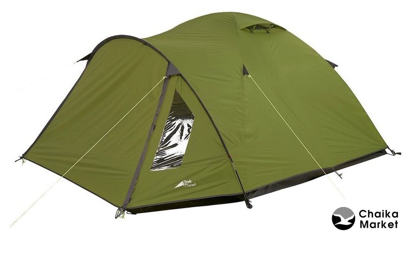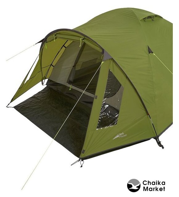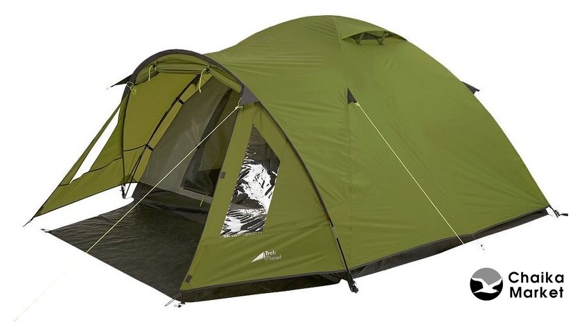 кемпинговая, весна/лето/осень, 4-местная, 1 вход, 1 комната, противомоскитная сетка, тамбур, штормовые оттяжки, ДхШхВ: 390x255x140 см