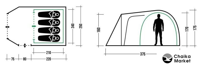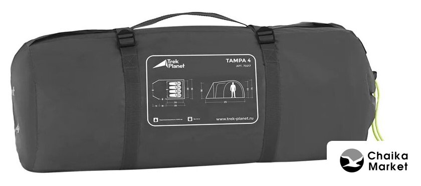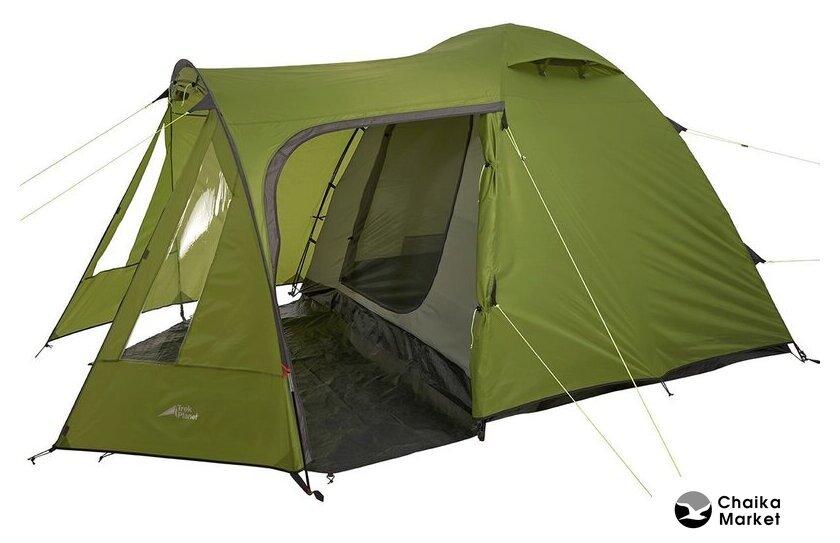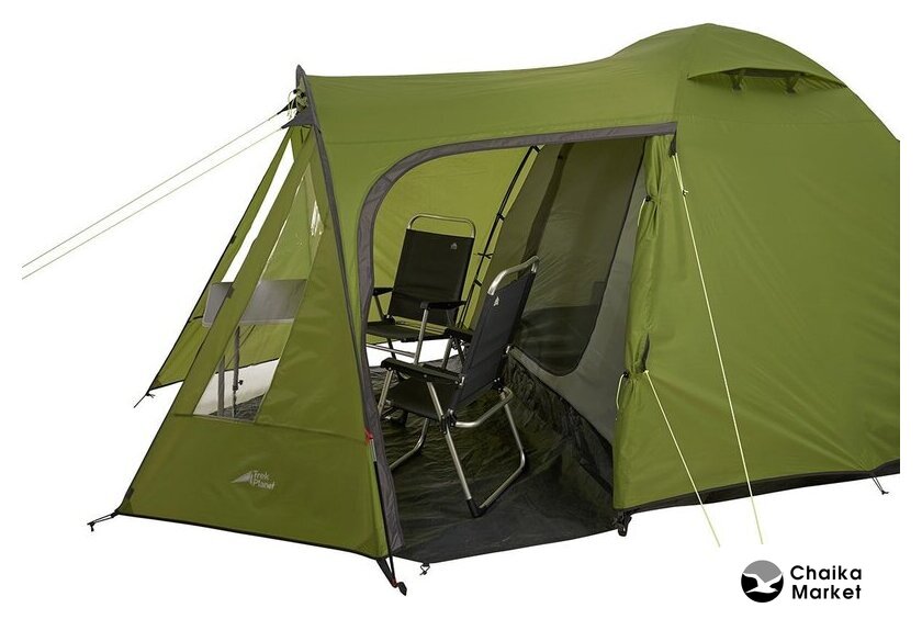 кемпинговая, весна/лето/осень, 4-местная, 2 входа, 1 комната, тамбур, штормовые оттяжки, ДхШхВ: 365x260x205 см