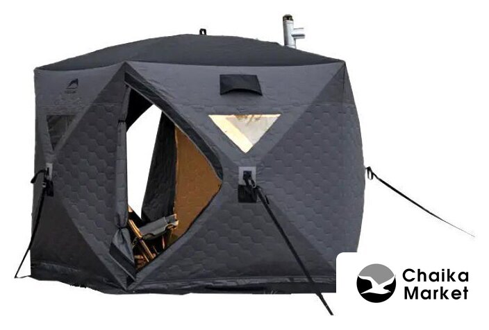 для зимней рыбалки, зима, 3-местная, 1 вход, 1 комната, штормовые оттяжки, ДхШхВ: 270x180x210 см