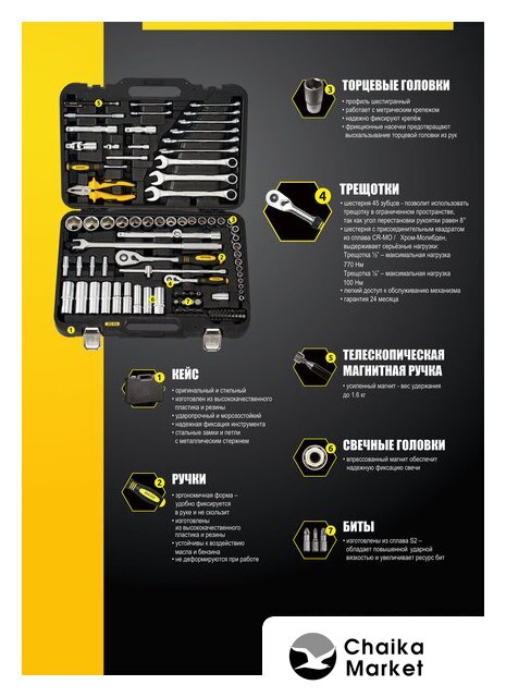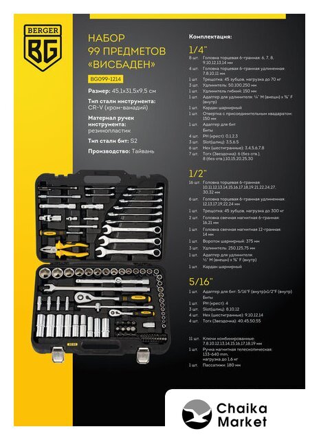 универсальный набор, 1/4", 3/8", 1/2", 148 предметов