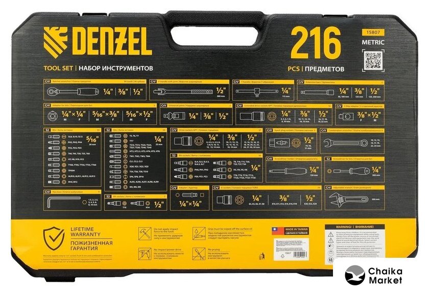 универсальный набор, 1/4", 3/8", 1/2", 216 предметов