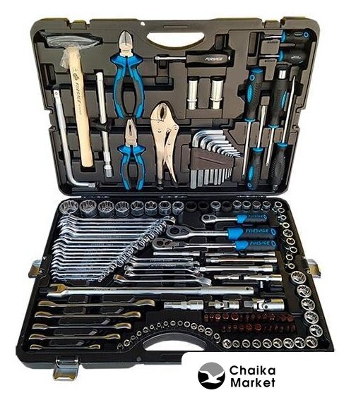 Комплектация | Общее кол-во единиц - 148 шт;Посадочный квадрат - 1/4, 3/8, 1/2";Накидные ключи - 5 шт;Комбинированные ключи - 17 шт;Разрезные ключи - 5 шт;Размеры гаечных ключей - 6 – 24 мм;Трещотка (храповый механизм);Шестигранных ключей - 10 шт;Размер шестигранных ключей - 2.5 – 14 мм;Торцевые головки (6 граней) - 24 шт;Размеры торцевых головок (6 граней) - 4 – 24 мм;Торцевые головки (12 граней) - 19 шт;Размеры торцевых головок (12 граней) - 6 – 32 мм;Торцевые головки (E-профиль) - 10 шт;Размеры торцевых головок (E-профиль) - E4 – E20;Ключ-трещотка - 3 шт;Отверточная рукоятка - 1 шт;Свечные головки - 2 шт;Биты - 26 шт;Размеры бит - SL4 – SL7, PH0 – PH3, PZ0 – PZ3, H2 – H10, TH10 – TH40;Вороток - 4 шт;Карданный шарнир - 3 шт;Удлинитель - жесткий/гибкий / 6 шт;Отвертка - 6 шт / SL5.5, SL6.5x2, PH1, PH2x2;Молоток - 1 шт;Плоскогубцы - 1 шт;Кусачки - 1 шт;Струбцина;переходник;пластиковый кейс. |