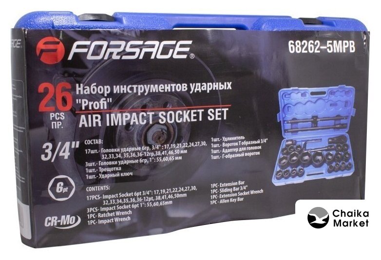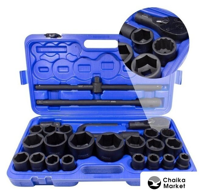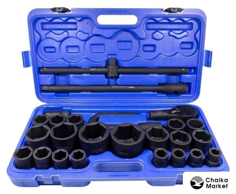 Торцевые головки 3/4" | 17 предмет(ов) (17, 19, 21, 22, 24, 27, 30, 32, 33, 34, 35, 36, 36 - 12гр, 38, 41, 46 и 50 мм) |
