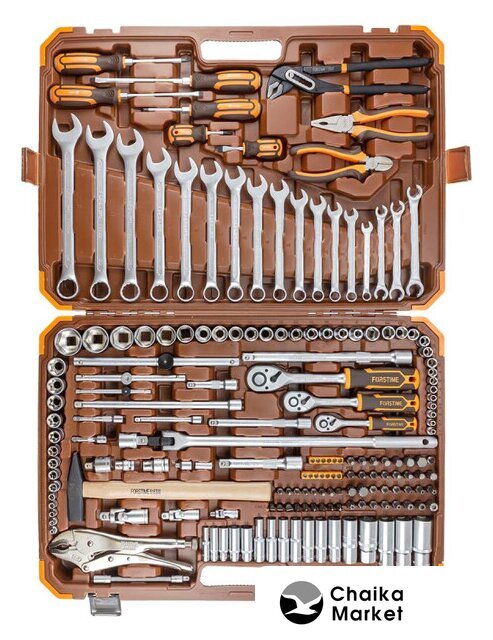 Комплектация | Инструменты в наборетрещотка (3 шт.), отвертка (6 шт.), кусачки (1 шт.), пассатижи (1 шт.), плоскогубцы (1 шт.), молоток (1 шт.), зажим (1 шт.), ключ гаечный (21 шт.)Трещотка1/2″, 3/8″, 1/4″Отверткишлицевая (SL) (3 шт.), крестовая (PH) (3 шт.)Доп. комплектациякейс, магнит телескопический (1 шт.)ОснасткаОснасткаголовки (95 шт.), насадки-биты (30 шт.), удлинители (9 шт.), кардан (3 шт.), держатель (3 шт.), адаптер (3 шт.)Головкиторцевые (32 шт.), глубокие торцевые (15 шт.), торцевые Е-тип (14 шт.), свечные (2 шт.), головки со вставкой (32 шт.)Торцевые головки1/2″ (8–19, 22, 24, 27, 30, 32 мм), 3/8″ (10, 11, 12, 13, 14, 15 мм), 1/4″ (4, 4.5, 5, 5.5, 6, 7, 8, 9, 10 мм)Глубокие торцевые головки1/2″ (17, 19, 22 мм), 3/8″ (8, 9, 10, 11, 12, 13, 14 мм), 1/4″ (6, 8, 10, 12, 13 мм)Торцевые головки E-тип1/2″ (Е16, Е18, Е20, Е22, Е24), 3/8″ (Е10, Е11, Е12, Е14), 1/4″ (Е4, Е5, Е6, Е7, Е8)Головки со вставкойкрестовые (PH) (PH1, PH2, PH3), крестовые с насечками (PZ) (PZ1, PZ2), шестигранные (Hex) (Н5, Н6, Н7, Н8, Н10, Н12, Н14), звездочкой (Torx) (Т10, Т15, Т20, Т30, Т40, Т45, Т50), Ribe (5, 6, 7, 8, 10, 12, 14 мм), 12-гранные Spline (6, 8, 10, 12, 14, 16 мм)Насадки-битышлицевые (SL) (SL3, SL4, SL5.5, SL6.5, SL8, SL9.5), крестовые (PH) (РН0, РН1, РН2, РН3), крестовые с насечками (PZ) (PZ0, PZ1, PZ2), шестигранные (Hex) (Н1.5, Н2, Н2.5, Н3, Н4), звездочкой (Torx) (Т4, Т5, Т6, Т7, Т8, Т9, Т10, Т15, Т20, Т30, Т40)Удлинители1/2″ (125, 250 мм), 3/8″ (75, 150, 250 мм), 1/4″ (50, 75, 100 мм), гибкий удлинительКардан1/2″, 3/8″, 1/4″КлючиКлючивороток (4 шт.), комбинированный (14 шт.), разрезной (3 шт.)ВороткиT-образный (110, 165, 250 мм), шарнирный (430 мм)Размер ключа8 мм, 10 мм, 11 мм, 12 мм, 13 мм, 14 мм, 15 мм, 17 мм, 16 мм, 18 мм, 19 мм, 22 мм, 24 мм, 21 мм |