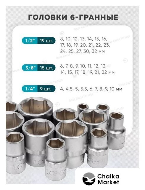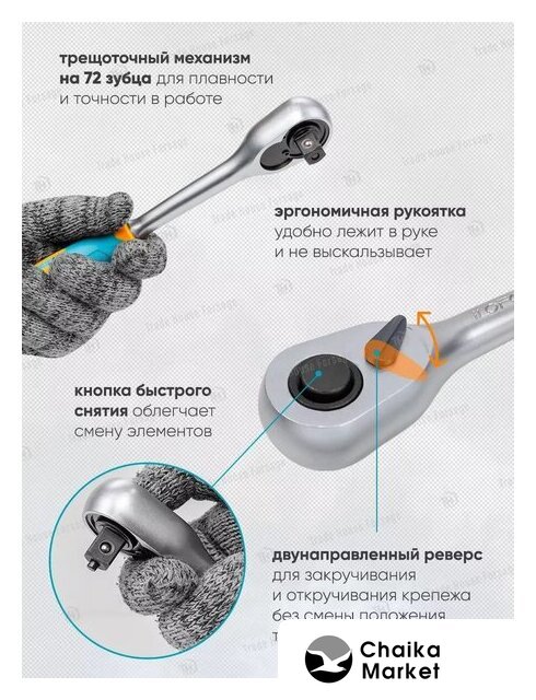 Трещотка | 3 (1/2", 3/8", 1/4") |