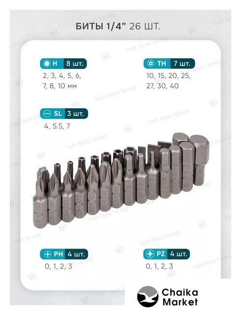 Посадочный размер (квадрат) | 1/4", 3/8", 1/2" |