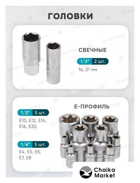 Торцевые головки 1/2" Е-тип | 5 предмет(ов) |