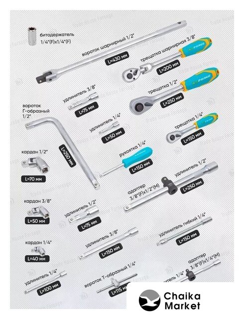 Т-образный вороток | 1/2", 3/8", 1/4" |