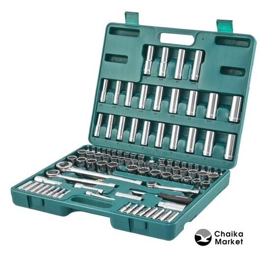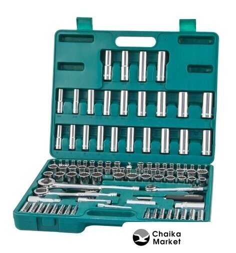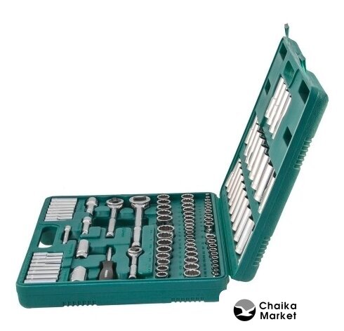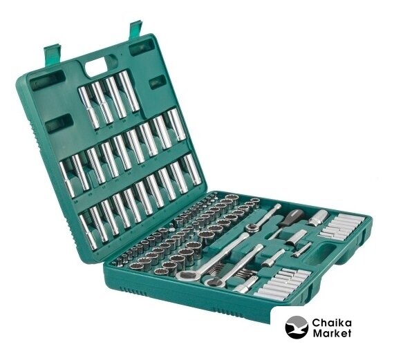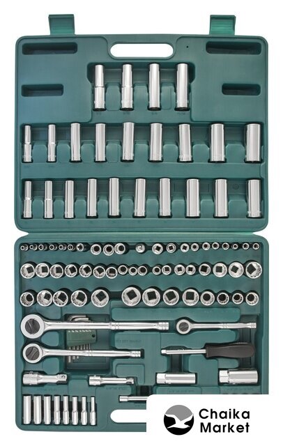 Комплектация | - 1/2’’ DR:- 12-игранные головки торцевые, 8 шт.: 1/2’’, 9/16’’, 5/8’’, 11/16’’, 3/4’’, 13/16’’, 7/8’’, 15/16’’;- 12-игранные головки торцевые, 5 шт.: 18, 19, 20, 21, 22 мм;- Головки торцевые глубокие, 4 шт.: 1/2’’, 9/16’’, 5/8’’, 11/16’’;- Удлинитель 125 мм;- Трещоточная рукоятка;- 1/4’’ DR:- Головки торцевые, 10 шт.: 5/32’’, 3/16’’, 7/32’’, 1/4’’, 9/32’’, 5/16’’, 11/32’’, 3/8’’, 7/16’’, 1/2’’;- Головки торцевые, 10 шт.: 4, 5, 6, 7, 8, 9, 10, 11, 12, 13 мм;- Головки торцевые глубокие, 8 шт.: 3/16’’, 7/32’’, 1/4’’, 9/32’’, 5/16’’, 11/32’’, 3/8’’, 7/16’’;- Головки торцевые глубокие, 8 шт.: 4, 5, 6, 7, 8, 9, 10, 11 мм;- Удлинитель 75 мм;- Отверточная рукоятка;- Трещоточная рукоятка;- 3/8’’ DR:- 12-игранные головки торцевые, 8 шт.: 3/8’’, 7/16’’, 1/2’’, 9/16’’, 5/8’’, 11/16’’, 3/4’’, 13/16’’;- 12-игранные головки торцевые, 10 шт.: 10, 11, 12, 13, 14, 15, 16, 17, 18, 19 мм;- 12-игранные головки торцевые глубокие, 9 шт.: 3/8’’, 7/16’’, 1/2’’, 9/16’’, 5/8’’, 11/16’’, 3/4’’, 13/16’’, 7/8’’;- Головки торцевые глубокие, 10 шт.: 10, 11, 12, 13, 14, 15, 16, 17, 18, 19 мм;- Головки торцевые свечные 2 шт.: 16 и 21 мм;- Удлинитель 75 мм;- Адаптер 3/8’’DR(F)x1/4’’(M);- Трещоточная рукоятка’;- Отвертки угловые (торцевые шестигранные ключи), 7 шт. |