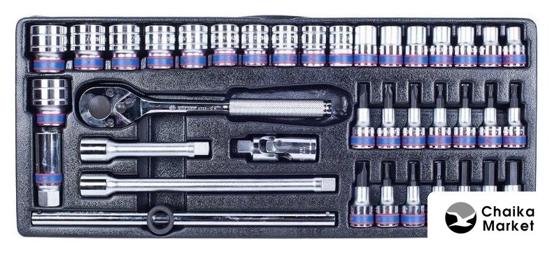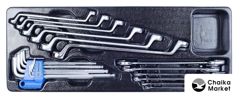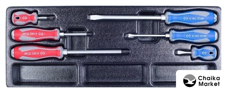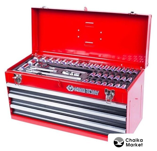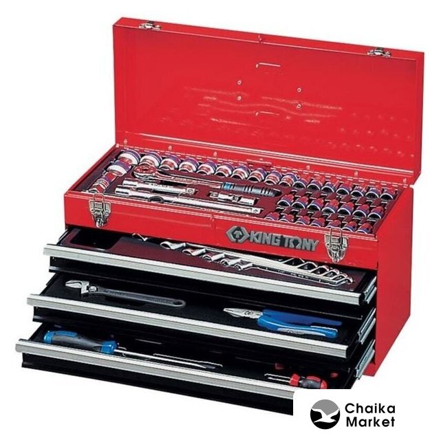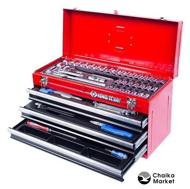 Комплектация | • Отвертки крестовые PHILLIPS KING TONY серии 1421: No.1 x 80, No.2 x 38, No.3 x 150• Отвертки шлицевые SLOTTED KING TONY серии 1422: 6.5 x 3 мм• Насадки (биты) торцевые 1/2", PHILLIPS KING TONY серии 4021: No.2 , No.3• Насадки (биты) торцевые 1/2", SLOTTED KING TONY серии 4022: 8, 10 мм• Насадки (биты) торцевые 1/2", TORX KING TONY серии 4023: T25, T27, T30, T40• Насадки (биты) торцевые 1/2", HEX KING TONY серии 4025: 4, 5, 6, 8, 10, 12• Удлинители 1/2" KING TONY серии 4251: 5", 10"• Торцевые шестигранные головки 1/2" KING TONY серии 4335M: 10, 11, 12, 13, 14, 15, 16, 17, 18, 19, 20, 21, 22, 23, 24, 27, 30, 32 мм• Вороток скользящий 1/2", 300 мм, KING TONY 4572-12• Головка свечная шестигранная 1/2", 21 мм, резиновый фиксатор KING TONY 463521R• Трещотка 1/2" длина 250 мм KING TONY 4768-10F• Кардан 1/2" KING TONY 4791R• Ключ разводной 200 мм KING TONY 3611-08R• Пассатижи комбинированные 180 мм KING TONY 6111-07• Пассатижи тонконосые 160 мм KING TONY 6311-06• Захват переставной 250 мм KING TONY 6511-10A• Шестигранники Г-образные, с шаровым окончанием KING TONY серии 1120M: 1.5, 2, 2.5, 3, 4, 5, 6, 8, 10 мм• Ключи рожковые KING TONY серии 1900: 6 x 7, 8 x 10, 11 x 13, 12 x 13, 17 x 19, 22 x 24 мм• Ключи накидные KING TONY серии 1970: 8 x 9, 10 x 11, 12 x 13, 14 x 15, 16 x 17, 18 x 19 мм |