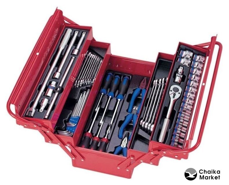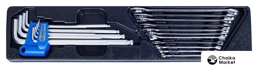 Комплектация | Комплект комбинированных ключей;Комплект силовых отвёрток;Комплект шарнирно-губцевого инструмента; Комплект принадлежностей для торцевых головок; Комплект торцевых головок с принадлежностями; Комплект комбинированных ключей и шестигранников. |