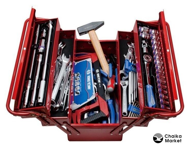 Комплектация | Ключи комбинированные: 6, 7, 8, 9, 10, 11, 12, 13, 14, 15, 16, 17, 18, 19, 20, 21, 22, 24 ммОтвертки крестовые PHILLIPS: No.2 x 38 , No.3 x 150Отвертки шлицевые SLOTTED: 3 x 75 , 5 x 100 ммКлючи рожковые: 6 x 7, 8 x 10, 11 x 13, 12 x 13, 17 x 19, 22 x 24 ммШестигранники Г-образные, с шаровым окончанием: 1.5, 2, 2.5, 3, 4, 5, 6, 8, 10 ммКлючи Г-образные TORX: T10, T15, T20, T25, T27, T30, T40Набор торцевых L-образных колючей, 8-24 мм, 12 предметовКлюч разводной 200 ммПассатижи комбинированные 180 ммПассатижи тонконосые 160 ммЗахват переставной 250 ммМолоток 800 г., квадратныйНожовка по металлу 305 ммНабор принадлежностей для торцевых головок, ложемент, 6 предметовНабор торцевых головок 1/2" с принадлежностями, ложемент, 20 предметов |