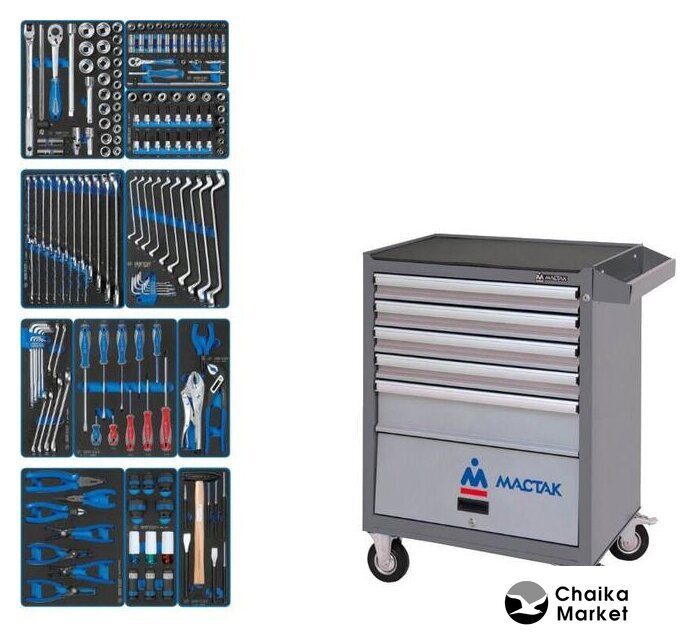 Комплектация | Головки торцевые стандартные 6-гранные: 8, 9, 10, 11, 12, 13, 14, 15, 16, 17, 18, 19, 20, 21, 22, 23, 24, 25, 26, 27, 28, 29, 30, 32 ммГоловка свечная 12-гранная: 14 ммГоловка свечная 12-гранная: 16 ммТрещотка флажковая: 250 мм, 32 зубцаУдлинители: 75, 125, 250 ммВороток с шарниром: 380 ммВороток скользящий: 300 ммКардан: 77,5 ммГоловки торцевые стандартные6-гранные: 4, 4.5, 5, 5.5, 6, 7, 8, 9, 10, 11, 12, 13, 14 ммГоловки торцевые глубокие6-гранные: 4, 4.5, 5, 5.5, 6, 7, 8, 9, 10, 11, 12, 13, 14 ммТрещотка флажковая: 140 мм, 24 зубцаВороток, скользящий: 115 ммДержатель вставок (бит) 1/4";Отвертка-вороток: 150 ммУдлинители: 50, 100, 150 ммКардан: 36 ммЕ-стандарт (TORX): E10, E12, E14, E16, E18, E20Головки торцевые 3/8"Е-стандарт (TORX): E8, E10, E12, E14, E16, E18Насадки торцевые 3/8"HEX: H3, H4, H5, H6, H7, H8 H10, H12TORX: T15, T20, T25, T27, T30, T40, T45, T50Ключи комбинированные: 6, 7, 8, 9, 10, 11, 12, 13, 14, 15, 16, 17, 18, 19, 21, 22, 24, 27, 30, 32 ммКлючи накидные: 6x7, 8x9, 10x11, 12x13, 14x15, 16x17, 18x19, 20x22, 24x27, 30x32 ммКлючи L-образные TORX: T10, T15, T20, T25, T27,T30, T40, T45, T50Шестигранник Г-образный, с шаровым окончанием KING TONY: 1.5, 2, 2.5, 3, 4, 5, 6, 8, 10Ключ разрезной KING TONY: 8x10, 10x12, 11x13, 12x14, 17x19, 19x22Отвертка крестовая PhillipsPH2 x 38 ммPH1 x 80 ммPH2 x 100 ммPH3 x 150 ммОтвертка шлицевая Slotted3 x 75 мм4 x 100 мм5.5 x 125 мм6.5 x 150 мм8 x 175 мм6.5 x 38 ммЗахват переставной 250 ммПлоскогубцы тонконосые, мини 125 мм Зажим с фиксатором,с закругленными губками 250 ммПассатижи комбинированные: 200 ммБокорезы: 160 ммПассатижи тонконосые: 160 ммЩипцы (съемники) для стопорных колец, разжимные загнутые: 175 ммЩипцы (съемники) для стопорных колец, сжимные загнутые : 175 ммЩипцы (съемники) для стопорных колец, разжимные прямые: 188 ммЩипцы (съемники) для стопорных колец, сжимные прямые: 188 ммГоловка торцевая ударная глубокая 1/2", тонкостенная, пластиковая защита: 17, 19, 21 ммГоловка торцевая ударная шестигранная 1/2": 17, 19, 32, 34, 36 ммГоловка торцевая ударная глубокая 1/2", тонкостенная: 17, 19, 21 ммКернер: 4 x 120Выколотка: 3 x 125, 4 x 150, 5 x 165, 6 x 180Зубило: 17 x 150, 20 x 175Молоток 300 г, квадратный KING TONY 7821-30 |