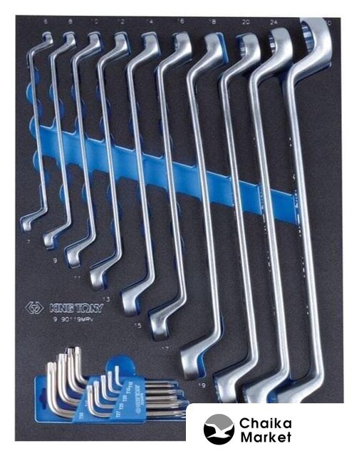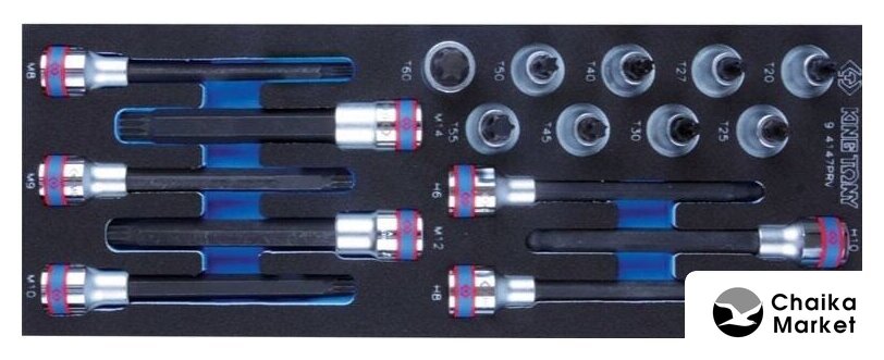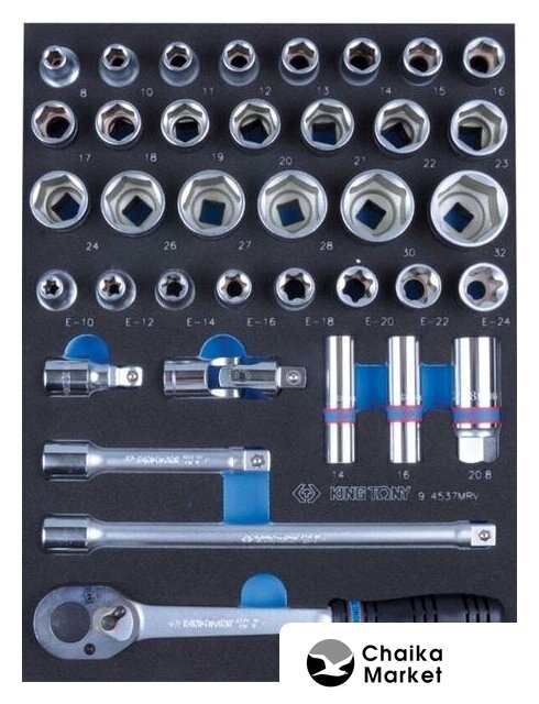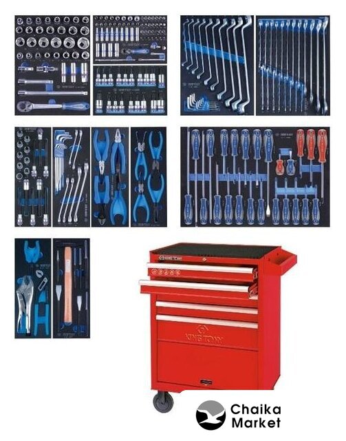 Комплектация | Головки и принадлежности 1/2"Головка торцевая стандартная шестигранная: 8, 10, 11, 12, 13, 14, 15, 16, 17, 18, 19, 20, 21, 22, 23, 24, 26, 27, 28, 30, 32Головка торцевая TORX Е-стандарт, L = 39 мм: E10, E12, E14, E16, E18, E20, E22, E24Трещотка флажковая: 32 зубца, длина 250 ммУдлинитель: длина 125 мм, 250 ммУдлинитель: длина 50 мм, с шаровым окончанием 15 градусовКардан: 1 штГоловка свечная шестигранная L = 70 мм: 16 мм, 21 мм, резиновый фиксаторГоловка для свечей зажигания 12 гр: 14 мм, резиновый фиксаторГоловка торцевая стандартная шестигранная 1/4": 4, 4.5, 5, 5.5, 6, 7, 8, 9, 10, 11, 12, 13, 14Головка торцевая глубокая шестигранная 1/4": 4, 4.5, 5, 5.5, 6, 7, 8, 9, 10, 11, 12, 13, 14Головка торцевая TORX Е-стандарт 1/4": E4, E5, E6, E7, E8Насадка (бита) торцевая 1/4", TORX: T8, T9, T10, T15, T20, T25, T27, T30, T40Насадка (бита) торцевая 1/4", HEX: 3, 4, 5, 6, 8Насадка (бита) торцевая 1/4, Pozidriv: PZ1, PZ2Насадка (бита) торцевая 1/4", Phillips, L = 25 мм: PH1, PH2Насадка (бита) торцевая 1/4", Slotted, L = 25 мм: 3.5, 5.5, 8Вставка (бита) торцевая 1/4", TORX, L = 25 мм: T6, T7Вставка (бита) торцевая 1/4", SPLINE, L = 25 мм: M4, M5, M6, M8, M10Насадки (биты) торцевые 1/2" (12,7 мм)Шестигранники (HEX): 3, 4, 5, 6, 7, 8, 10, 12, 14 - длина 60 мм;17, 19 - длина 66 ммЗвезда 12-лучевая (SPLINE): M5, M6, M8, M10, M12, M14 - длина 60 ммЗвезда 12-лучевая с отверстием (SPLINE): M16, M18 - длина 66 ммКлючи накидные: 6x7, 8x9, 10x11, 12x13, 14x15, 16x17, 18x19, 20x22, 24x27, 30x32 ммКлючи L-образные TORX: T10, T15, T20, T25, T27,T30, T40, T45, T50Ключи комбинированные: 6, 7, 8, 9, 10, 11, 12, 13, 14, 15, 16, 17, 18, 19, 21, 22, 24, 27, 30, 32 ммНасадки (биты) торцевые 1/2", TORX, L=80 мм: T20, T25, T27, T30, T40, T45, T50, T55, T60Насадки (биты) торцевые 1/2", SPLINE, L=140 мм: 4066 M8, M9, M10, M12, M14Насадки (биты) торцевые 1/2", HEX, L=140 мм, с шаровым окончанием: 6, 8, 10Шестигранник Г-образный, с шаровым окончанием: 1.5, 2, 2.5, 3, 4, 5, 6, 8, 10Ключ разрезной: 8x10, 10x12, 11x13, 12x14, 17x19, 19x22Бокорезы силовые: 180 ммПлоскогубцы тонконосые: 200 ммПлоскогубцы тонконосые удлинённые: 280 ммПлоскогубцы комбинированные: 160 ммСъемник для стопорных колец 180 мм, прямые, сжатие KING TONY 68HS-07Съемник для стопорных колец 180 мм, загнутые, сжатие KING TONY 68HB-07Съемник для стопорных колец 180 мм, прямые, разжатие KING TONY 68SS-07Съемник для стопорных колец 180 мм, загнутые, разжатие KING TONY 68SB-07Отвертка крестовая Phillips: PH2x38, PH1x80, PH2x100, PH3x150Отвертка шлицевая Slotted: 3x75, 4x100, 5.5x100, 6.5x100, 10x200, 6.5x38Отвертка TORX: T30x250, T25x250, T20x250, T15x250, T30x125, T27x100, T25x100, T20x100, T15x75, T10x75, T9x75, T8x75, T7x48, T6x48Захват переставной: 250 ммПлоскогубцы тонконосые, мини: 125 ммЗажим с фиксатором, с закругленными губками: 250 ммКернер: 4 x 120Выколотка: 3 x 125, 4 x 150, 5 x 165, 6 x 180Зубило: 17 x 150, 20 x 175Молоток 300 г, квадратный. |