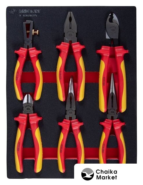 | Комплектация | – Бокорезы диэлектрические, 167 мм (6216-06A)– Пассатижи тонконосые диэлектрические, 210 мм (6318-08A)– Стриппер диэлектрический, 160 мм (6716-06A)– Пассатижи комбинированные диэлектрические, 185 мм (6116-07A)– Пассатижи тонконосые, загнутые, диэлектрические 200 мм (6336-08A)– Кабелерез диэлектрический, 214 мм (6146-08A) |