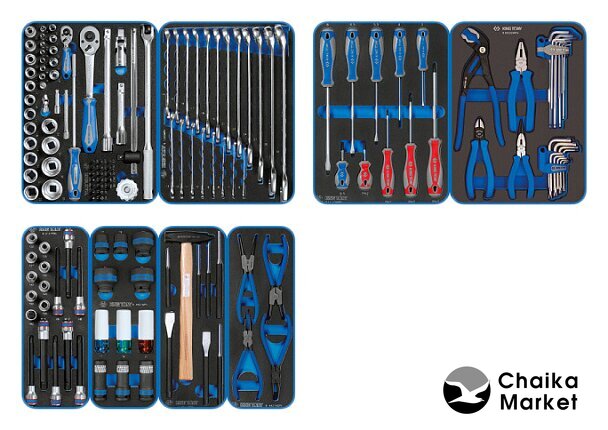 Комплектация | Модуль 1Набор торцевых головок 1/4"&1/2" с принадлежностями 9-7560MRV01 60 предметовНабор комбинированных ключей 9-12D20MRV 20 предметовМодуль 2 Набор отверток 9-31110MRV 10 предметовНабор пассатижей, шестигранников и TORX Г-образных 9-90222MRV 22 предметаМодуль 3 Набор насадок HEX, TORX и SPLINE 9-4147PRV 17 предметовНабор ударных головок 1/2" 9-4401MPV 11 предметовНабор зубил, выколоток, кернеров с молотком 9-90118PRV 8 предметовНабор съемников стопорных колец 9-44214GPV 4 предмета |