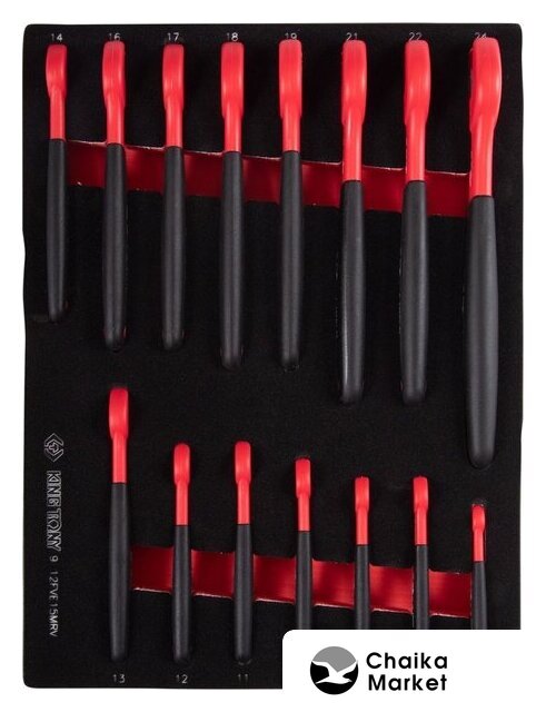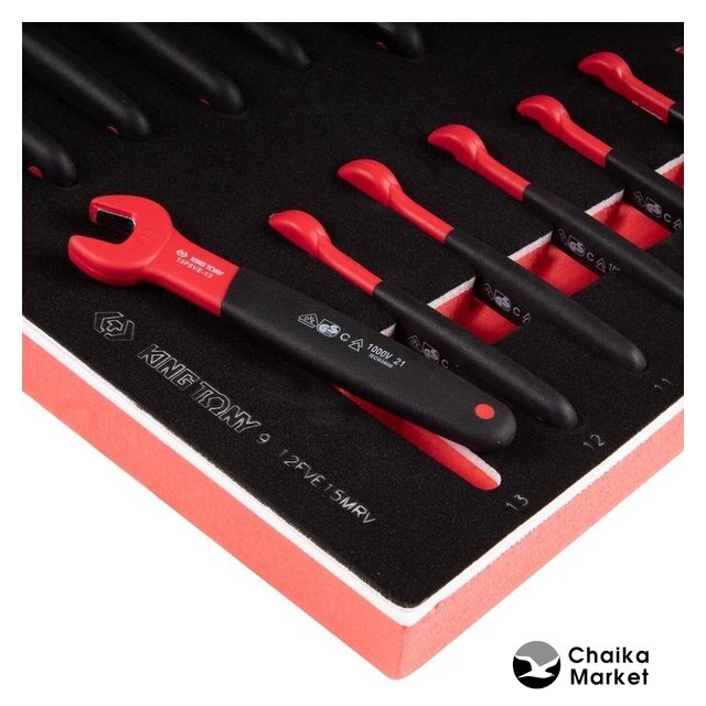 | Комплектация | Ключи рожковые диэлектрические (10F0VE) – 7, 8, 9, 10, 11, 12, 13, 14, 16, 17, 18, 19, 21, 22, 24 мм; Ложемент EVA 280×375 мм, №9 |