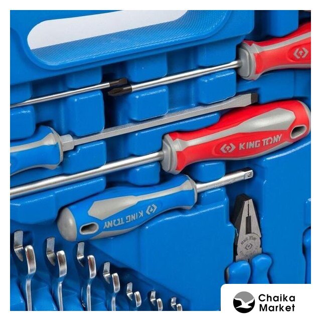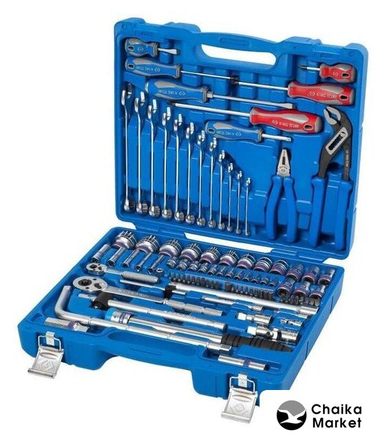 Комплектация | - Головки и принадлежности 1/2"Головка торцевая стандартная 6-гранная 4335M 10, 12, 13, 14, 15, 16, 17, 18, 19, 21, 22, 24, 27, 30, 32 ммГоловка свечная 6-гранная, резиновый фиксатор 463516R 16 ммГоловка свечная 6-гранная, резиновый фиксатор 463521R 21 ммТрещотка флажковая с кнопкой 4771-10BR 32 зубца, 250 ммВороток скользящий 4573-10 250 ммВороток L-образный 4583-12R 300 ммРычаг-труба телескопический 4121-11GR 275 мм (применяется как удлинитель рукояток трещотки 4771-10BR и воротка 4583-12R)Удлинитель 4251-05R 125 ммУдлинитель 15 градусов, с шаровым окончанием 4223-02R 50 ммКардан 4791R 1 шт.- Головки и принадлежности 1/4"Головка торцевая стандартная 6-гранная 2335M 4, 4.5, 5, 5.5, 6, 7, 8, 9, 10, 11, 12, 13 ммГоловка торцевая глубокая 6-гранная 2235M 7, 8, 10, 12, 13 ммТрещотка флажковая с кнопкой 2771-55F 24 зубца, 140 ммВороток скользящий 2571-45 115 ммОтвертка вороток 2178DF 150 ммУдлинитель 2221-02 50 ммУдлинитель 2221-04 100 ммДержатель вставок (бит) 1/4"(6.35 мм) 2141 1 шт.Кардан 2792 1 шт.- КлючиКлючи комбинированные 1060 6, 7, 8, 10, 12, 13, 14, 15, 16, 17, 18, 19 мм- ОтверткиКрестовые Phillips 1421 PH2 x 38 мм, PH2 x 100 мм, PH3 x 150 ммШлицевые Slotted 1422 4 x 100 мм, 6.5 x 38 ммШлицевая Slotted усиленная 20219MR 6.5 x 150 ммВставки (биты) 1/4" (6.35 мм)Крестовые Phillips 1025P PH0, PH1, PH2, PH3Крестовые Pozidriv 1025Z PZ1, PZ2, PZ3Шлицевые Slotted 1025S 4, 5.5, 7, 8 ммШестигранники HEX 1025H H1.5, H2, H2.5, H3, H4, H5, H6, H7, H8, H106-лучевая звезда TORX 1025T T8H, T10H, T15H, T20H, T25H, T27H, T30H, T40H- Шарнирно-губцевый инструментПлоскогубцы комбинированные 6111-06 160 ммЗахват переставной 6516-10 250 мм |