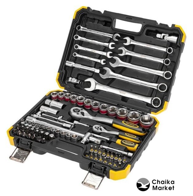 | Комплектация | - Головки торцевые 1/4”: 4, 4.5, 5, 5.5, 6, 7, 8, 9, 10, 11, 12, 13, 14 мм- Биты 1/4"": PH1, PH2, PZ1, PZ2, H3, H4, H5, H6, SL4, SL5.5, SL7, T8, T10, T15, T20, T25, T30- Универсальный шарнир 1/4”- Адаптер 1/4”- Трещоточный ключ 72 зубчика 1/4”- Рукоятка 1/4”: 160 мм- Удлинитель 1/4”: 50,100 мм- Адаптер ключ Т- образный 1/4""- Гибкий удлинитель 1/4”: 160 мм- Головки торцевые 1/2”:14, 15, 16, 17, 18, 19, 20, 21, 24, 27, 30, 32 мм- Головки свечные 1/2”: 16, 21 мм- Удлинитель 1/2”: 125, 250 мм- Универсальный шарнир 1/2”- Трещоточный ключ 72 зубчика 1/2”- Адаптер для бит 1/2”- Адаптер ключ Т-образный 1/2""- Биты 8*30 мм: PH3, PH4, PZ3, PZ4, H8, H10, H12, H14, SL8, SL10, SL12, T40, T45, T50, T55- Ключи комбинированные: 8, 10, 11, 12, 13, 14, 17, 19, 22 мм- Кейс |