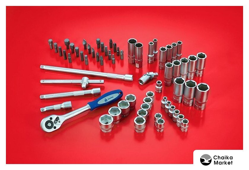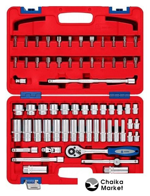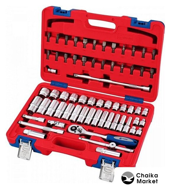 | Комплектация | – Головки торцевые и принадлежности 3/8"Короткие 6-гранные – 6, 7, 8, 9, 10, 11, 12, 13, 14, 15, 16, 17, 18, 19, 21, 22, 24 ммГлубокие 6-гранные – 8, 9, 10, 11, 12, 13, 14, 15, 16, 17, 18, 19, 21, 22 ммГоловки свечные 12-гранные – 16, 18 ммТрещотка флажковая с кнопкой – 45 зубцов, 200 ммВороток скользящий Т-образный – 165 ммУдлинители – 75, 150, 250 ммКардан – 54 ммДержатель вставок (бит) 5/16" – 28 мм– Вставки (биты) 5/6"Крестовые Phillips – PH2, PH3, PH4Крестовые Pozidrive – PZ2, PZ3, PZ4Шлицевые Slotted – 8, 10, 12 ммTORX – T40, T45, T50, T55, T60Шестигранные – H7, H8, H10, H12, H14SPLINE – M5, M6, M8, M10, M12 |