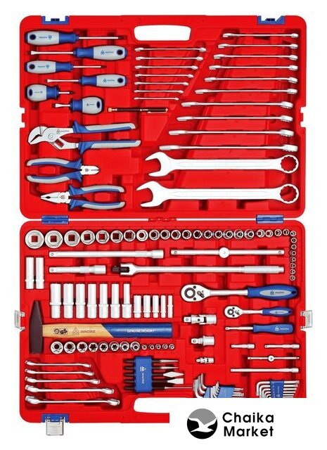 | Комплектация | Головки торцевые (30 шт.), глубокие торцевые (12 шт.), торцевые Е-тип (13 шт.), свечные (2 шт.)Торцевые головки 1/2″ (8-22, 24, 27, 30, 32 мм), 1/4″ (4, 4.5, 5, 5.5, 6, 7, 8, 9, 10, 11, 12, 13 мм)Глубокие торцевые головки 1/2″ (10, 12, 13, 14, 15, 17, 19 мм), 1/4″ (7, 8, 10, 12, 13 мм)Торцевые головки E-тип 1/2″ (E10, E12, E14, E16, E18, E20, E22, E24), 1/4″ (Е4, Е5, Е6, Е7, Е8)Удлинители 1/2″ (125, 250 мм), 1/4″ (50, 75, 150 мм), с шаром (50 мм)Кардан 1/2″ (72 мм), 1/4″ (40 мм)КлючиКлючи вороток (3 шт.), комбинированный (19 шт.), шестигранный (9 шт.), разрезной (5 шт.), звездочкой (Torx) (7 шт.)Воротки шарнирный (375 мм), скользящий (115, 250 мм)Размер ключа 8 мм, 10 мм, 11 мм, 12 мм, 13 мм, 14 мм, 15 мм, 17 мм, 16 мм, 19 мм, 22 мм, 24 мм, 1.5 мм, 2 мм, 2.5 мм, 3 мм, 4 мм, 5 мм, 6 мм, 27 мм, 30 мм, 32 мм, 21 мм |
