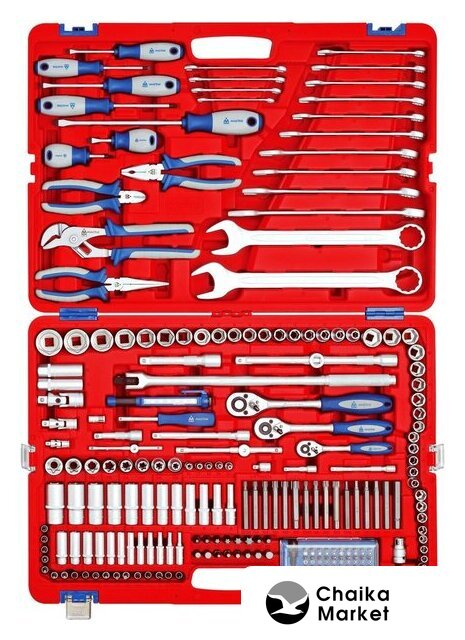 | Комплектация | Торцевые шестигранные головки 1/2″ (8-22, 24, 27, 30, 32 мм), 1/4″ (4, 4.5, 5, 5.5, 6, 7, 8, 9, 10, 11, 12, 13 мм), 3/8″ (8, 9, 10, 11, 12, 13, 14, 15, 16, 17, 18, 19, 21, 22 мм)Глубокие торцевые головки 3/8″ (8, 9, 10, 11, 12, 13, 14, 15, 17, 19, 21, 22 мм)Торцевые головки E-тип 1/2″ (E10, E12, E14, E16, E18, E20, E22, E24), 1/4″ (Е4, Е5, Е6, Е7, Е8)Головки со вставкой шлицевые (SL) (SL4, SL5.5, SL7), крестовые (PH) (РН1, РН2), крестовые с насечками (PZ) (PZ1, PZ2), шестигранные (Hex) (H3, H4, H5, H6), звездочкой (Torx) (T8, Т10, Т15, Т20, Т25, Т27, Т30)Насадки-биты шлицевые (SL) (SL3, SL5, SL4.5, SL5, SL5.5, SL6, SL7), крестовые (PH) (PH0, PH1, PH2, PH3, PH4), крестовые с насечками (PZ) (PZ0, PZ1, PZ2, PZ3, PZ4), шестигранные (Hex) (H1.5, H2, H2.5, H3, H4, H5, H6, H7, H8, H10, H12), звездочкой (Torx) (T30, T40, T45, T50, T55, T60), звездочкой с отверстием (Torx) (T10H, T15H, T20H, T25H, T27H, T30H), 12-гранные Spline (M6, M8, M10, M12)Удлинители 1/2″ (125, 250 мм), 3/8″ (75, 150 мм), 1/4″ (50, 100 мм)Кардан 1/2″ (72 мм), 3/8″ (54 мм), 1/4″ (40 мм)КлючиКлючи вороток (3 шт.), комбинированный (16 шт.)Воротки шарнирный (430 мм), скользящий (115, 165 мм)Размер ключа 8 мм, 10 мм, 11 мм, 12 мм, 13 мм, 14 мм, 15 мм, 17 мм, 16 мм, 19 мм, 22 мм, 24 мм, 27 мм, 30 мм, 32 мм, 21 мм |