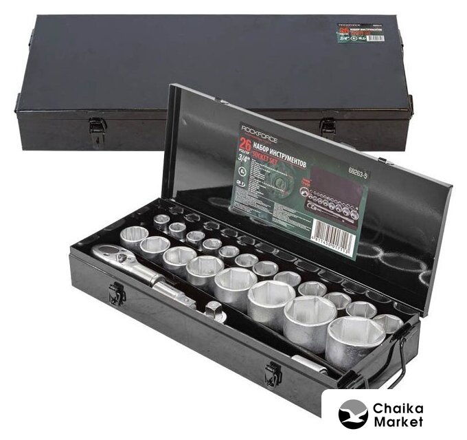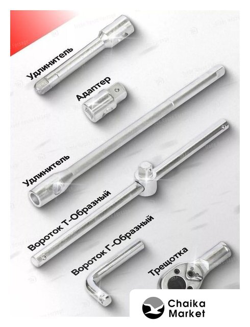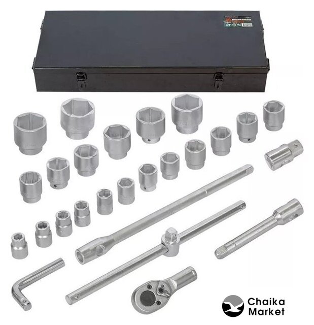 | Комплектация | набор головок (17 шт.), удлинители (2 шт.), адаптер (1 шт.), трещотка (1 шт.), вороток (1 шт.), кейс |