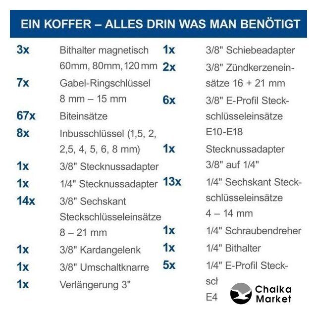 универсальный набор, 1/4", 3/8", 1/2", 126 предметов