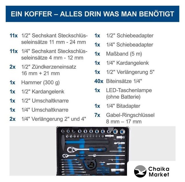 набор домашнего мастера, 1/4", 3/8", 1/2", 180 предметов