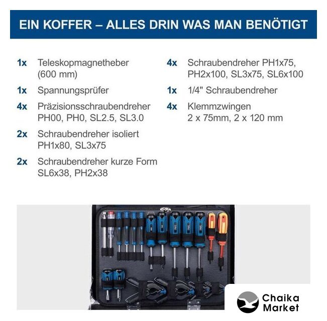 | Биты (насадки-отвертки) | (Hex, Torx, Phillips, Pozidriv, Slotted) |