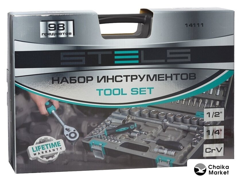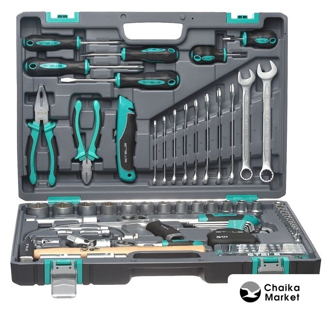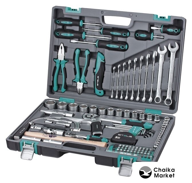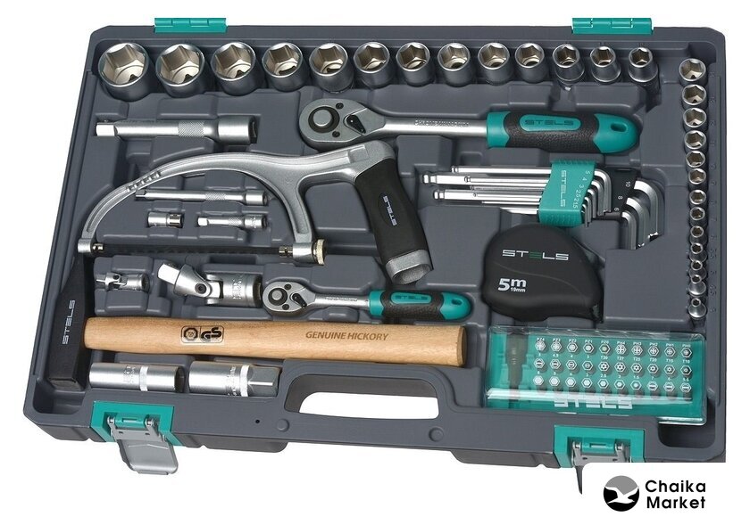 Комплектация | - Ключ трещоточный 1/2.- Ключ трещоточный 1/4.- Головки торцевые 1/2: 12, 13, 14,16, 17, 18, 19, 20, 22, 24, 27, 30, 32.- Головки торцевые 1/4: 4, 4.5, 5, 5.5, 6, 7, 8, 9, 10, 11, 12, 13, 14.- Ключи комбинированные 8,9,10,11,12,13,14,15,17,19.- Кардан 1/2.- Кардан 1/4.- Удлинитель 1/2, соединение под ключ 120 мм.- Удлинитель 1/4, соединение под ключ 50 мм, 100 мм.- Молоток 300 гр.- Пассатижи 175 мм.- Угловые шестигранные ключи 1.5 мм, 2 мм, 2.5 мм, 3 мм, 4 мм, 5 мм, 6 мм, 8 мм,10 мм.- Головки свечные 1/2 16 мм и 21 мм.- Бокорезы 175 мм.- Отвертки SL, SL5,5 x75 мм, SL6,5 x38 мм, SL6 x 100 мм.- Отвертки РН РН1х75, РН2х100, РН2х38.- Переходник бит 1/4->1/4.- Биты 1/4" Т10, Т15, Т20, Т25, Т27, Т30, SL 3, SL 4, SL 4.5, SL 5, SL 5.5, SL 6, SL7, H1.5, Н2, H2.5, Н3, Н4, Н5, Н6, PZ 0, PZ 1, PZ 2, PZ 3. PZ 4, РН0, РН1, РН2, PH 3.PH 4.- Адаптер битодержатель.- Ножовка по металлу 150 мм.- Нож 150 мм.- Рулетка 5 м. |