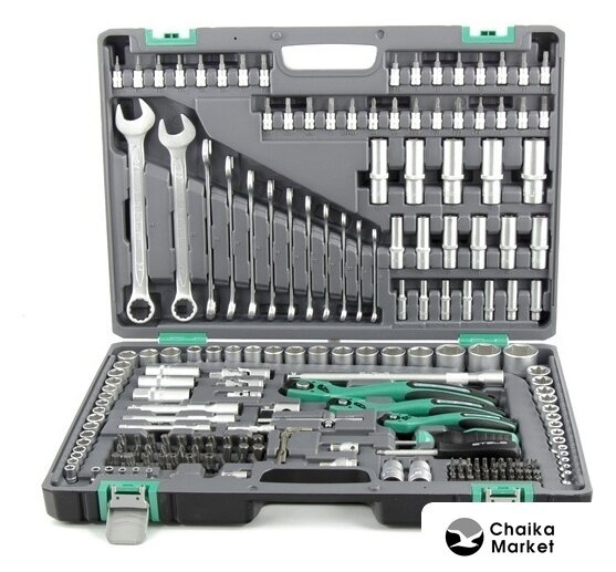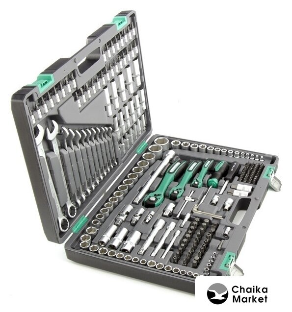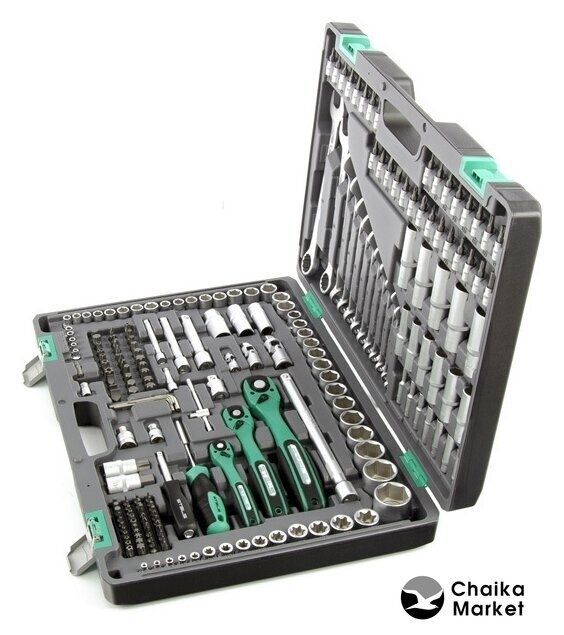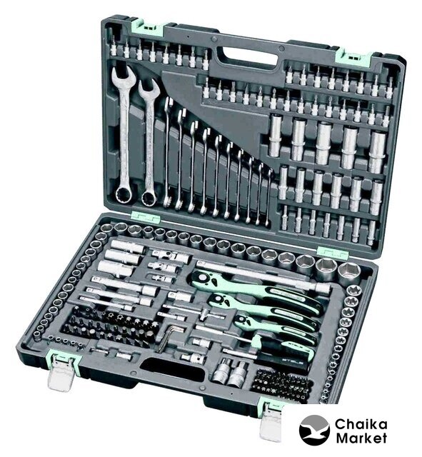 Комплектация | - Ключ трещоточный 1/4.- Ключ трещоточный 3/8.- Ключ трещоточный 1/2.- Вороток на 1/4, 1/2.- Удлинитель 1/4: 50 мм, 100 мм.- Удлинитель 125 мм 3/8.- Удлинитель 125 мм 1/2.- Отвертка-держатель 1/4.- Ключи комбинированные 8, 9, 10, 11, 12, 13, 14, 15, 17, 19, 22, 24 мм.- Кардан 1/4, 3/8, 1/2.- Головки торцевые свечные (с резиновой вставкой) 14 мм, 16 мм, 21 мм.- Головки торцевые удлиненные 1/4 (6,35 мм) 4, 5, 6, 7, 8, 9, 10 мм.- Головки торцевые удлиненные 3/8 (9,52 мм) 10, 11, 12, 13, 14, 15 мм.- Головки торцевые удлиненные 1/2 (12,70 мм) 16, 17, 18, 19, 22 мм.- Головки торцевые 1/4: 4, 4.5, 5, 5.5, 6, 7, 8, 9, 10, 11, 12, 13, 14 мм.- Головки торцевые 1/4: Е Е4, Е5, Е6, Е7, Е8 мм- Головки торцевые 3/8: 10, 11, 12, 13, 14, 15, 16, 17, 18, 19 мм- Головки торцевые 3/8: Е Е10, Е11, Е12, Е14, Е16, Е18 мм- Головки торцевые 1/2: 13, 14, 15, 16, 17, 18, 19, 20, 21, 22, 24, 27, 30, 32 мм- Головки торцевые 1/2: Е 20, 22, 24 мм.- Переходник для бит 1/4 длина 25 мм.- Переходник для бит 3/8 длина 28 мм.- Переходник для бит 1/2 длина 36 мм.- Биты с торцевыми головками 1/4 «Slotted» SL4, SL5.5, SL6.5, SL7. « Phillips PH0, PH1, PH2. « Pozidriv» PZ0, PZ1, PZ2. «Hex Driver» H3, H4, H5, H6. «Torx» Т8, Т9, Т10, Т15, Т20, Т25, Т27, Т30. «Torx Tamper Resistant» ТT8, ТT9, ТT10, ТT15, ТT20, ТT25, ТT27, ТT30.- Биты с торцевыми головками 1/2 «Hex Driver» H14. «Torx» Т70.- Биты 5/16 (7,93 мм) «Slotted» SL8, SL10, SL12. « Phillips» PH2, PH3, PH4. « Pozidriv» PZ2, PZ3, PZ4. «Hex Driver» H7, H8, H10, H12. «Torx» T40, Т45, Т50, Т55, Т60. «Torx Tamper Resistant» TT40, ТT45, ТT50, ТT55, ТT60. «Torx Plus Tamper Resistant» 50. «Tri-groove» 10, 12. «Linehead» 10, 11, 12, 13.- Биты 1/4 (6,35 mm) Tri-groove 5, 6, 8. Torx Plus Tamper Resistant 10, 15, 20, 25, 27, 30, 40, 45. Hex Tamper Resistant 2, 2.5, 3, 4, 5, 6. Torx Tamper Resistant 7. Square Head 0, 1, 2, 3. Spanner 6, 8, 10. Tri-Wing 1, 2, 3, 4. Torq-Set 4, 6, 8, 10 . Linehead 5, 6, 7, 8, 9. Torx 5, 6, 7. Clutch 1, 2, 3.- Переходник для торцевых головок 1/4" длина 30 мм.- Комплект шестигранных ключей 1,3 мм, 1,5 мм, 2 мм, 2,5 мм, 3 мм, 4 мм, 5 мм. |