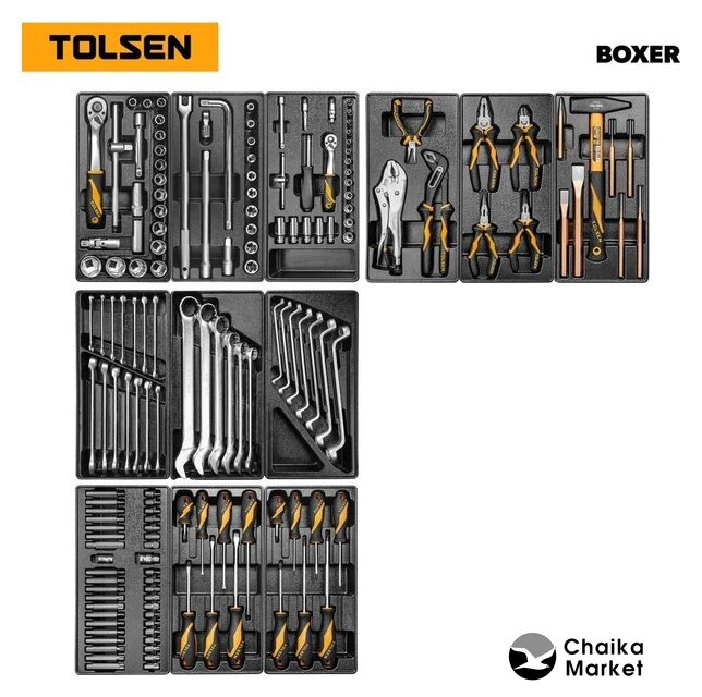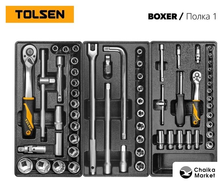 | Комплектация | Набор инструментов BOXER TT85415-157, 157 предметов / 12 ложементов 370×185 мм / 4 модуля |