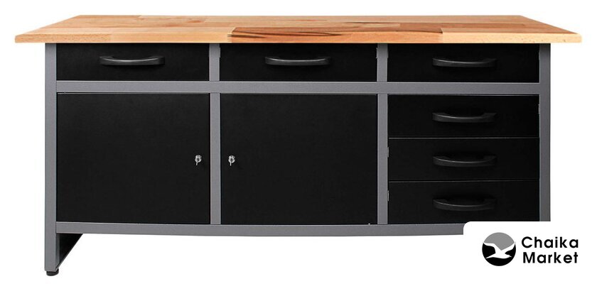 стол-верстак, дерево/сталь, 7 отделений, 1600×600×850 мм