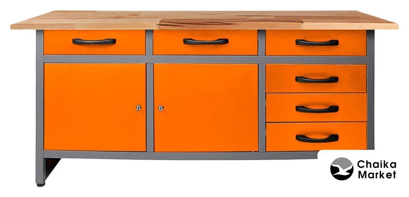 стол-верстак, дерево/сталь, 7 отделений, 1600×600×850 мм