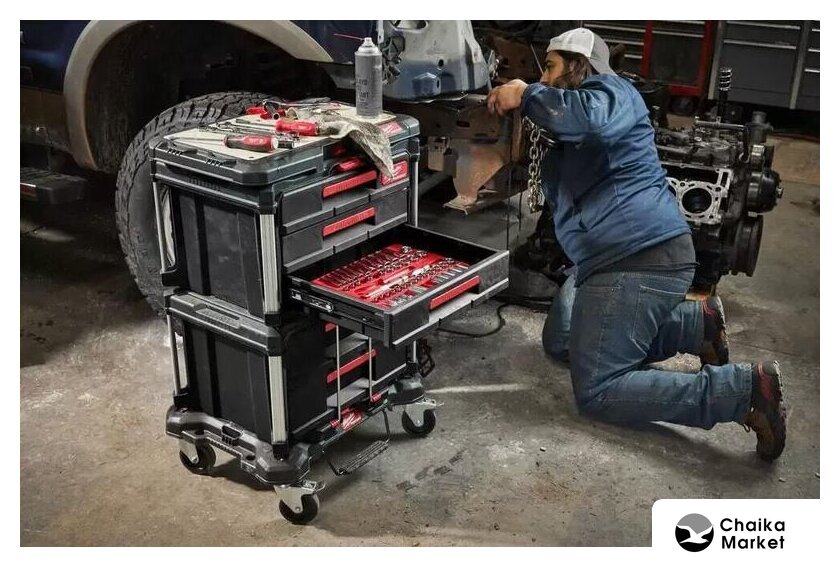 стол-верстак, дерево/сталь, 4 отделения, 600×600×850 мм