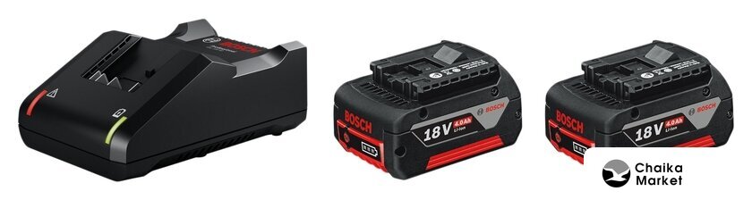 Li-ion, для строительного инструмента, совместим с Bosch, 18 В, 4 А·ч, с индикатором заряда, 2 аккумулятора в наборе, напряжение зарядного устройства: 18-40 В