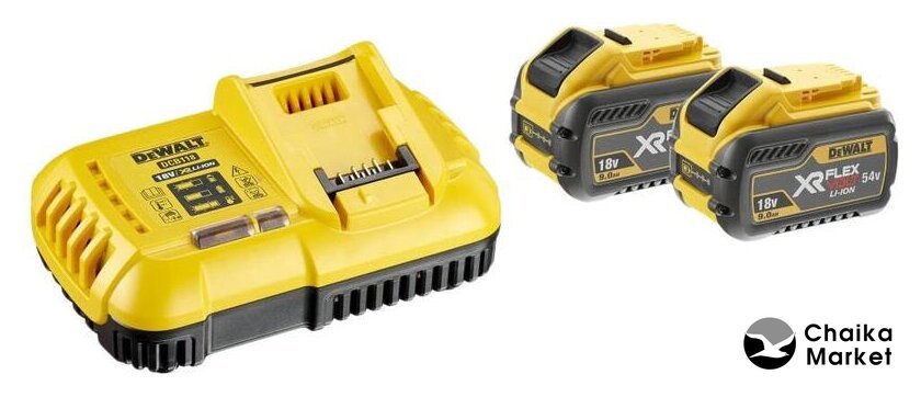 Li-ion, для строительного инструмента, 18 В, 5.5 А·ч, с индикатором заряда, 2 аккумулятора в наборе, напряжение зарядного устройства: 12-18 В