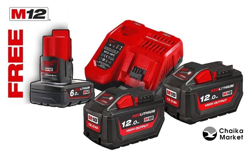 | Комплектация | - Аккумулятор M18 HB12 - 2 шт- Аккумулятор M12 B6 - 1 шт- Быстрое зарядное устройство Milwaukee M12-18 FC - 1 шт- Инструкция по эксплуатации- Поставляется в картонной коробке |