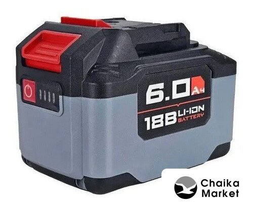 Li-ion, для строительного инструмента, совместим с Hanskonner, 18 В, 6 А·ч, с индикатором заряда, 1 аккумулятор в наборе, 1010 г