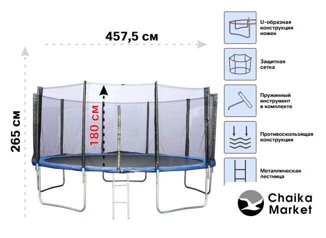 | Высота с сеткой | 265 см |