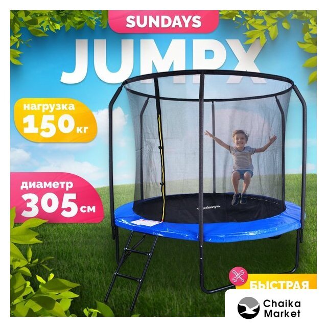 пружинный (каркасный) круглый, диаметр (диагональ): 305 см, нагрузка: 150 кг, с сеткой, с лестницей