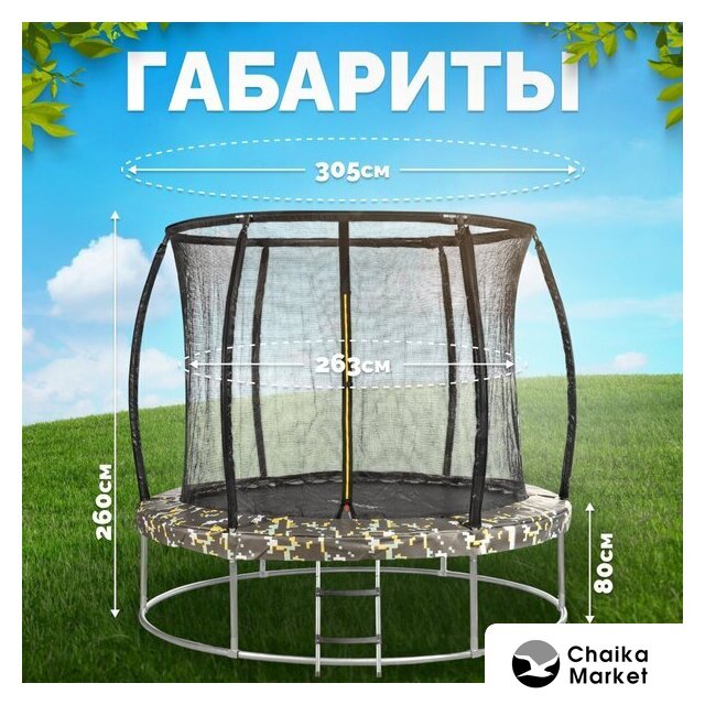 пружинный (каркасный) круглый, диаметр (диагональ): 312 см, нагрузка: 150 кг, с сеткой, с лестницей