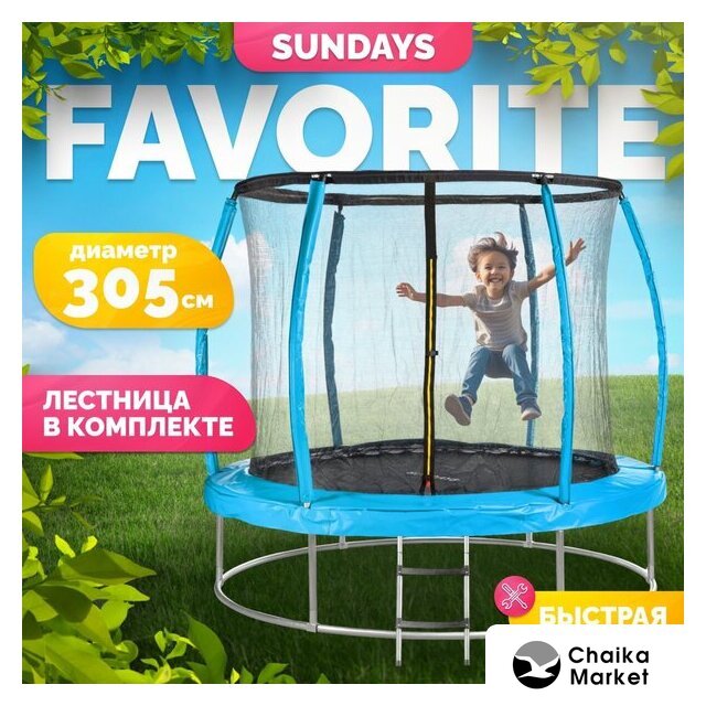 пружинный (каркасный) круглый, диаметр (диагональ): 312 см, нагрузка: 150 кг, с сеткой, с лестницей