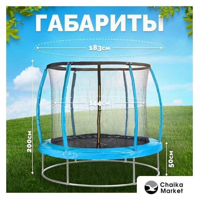 пружинный (каркасный) круглый, диаметр (диагональ): 244 см, нагрузка: 120 кг, с сеткой, с лестницей